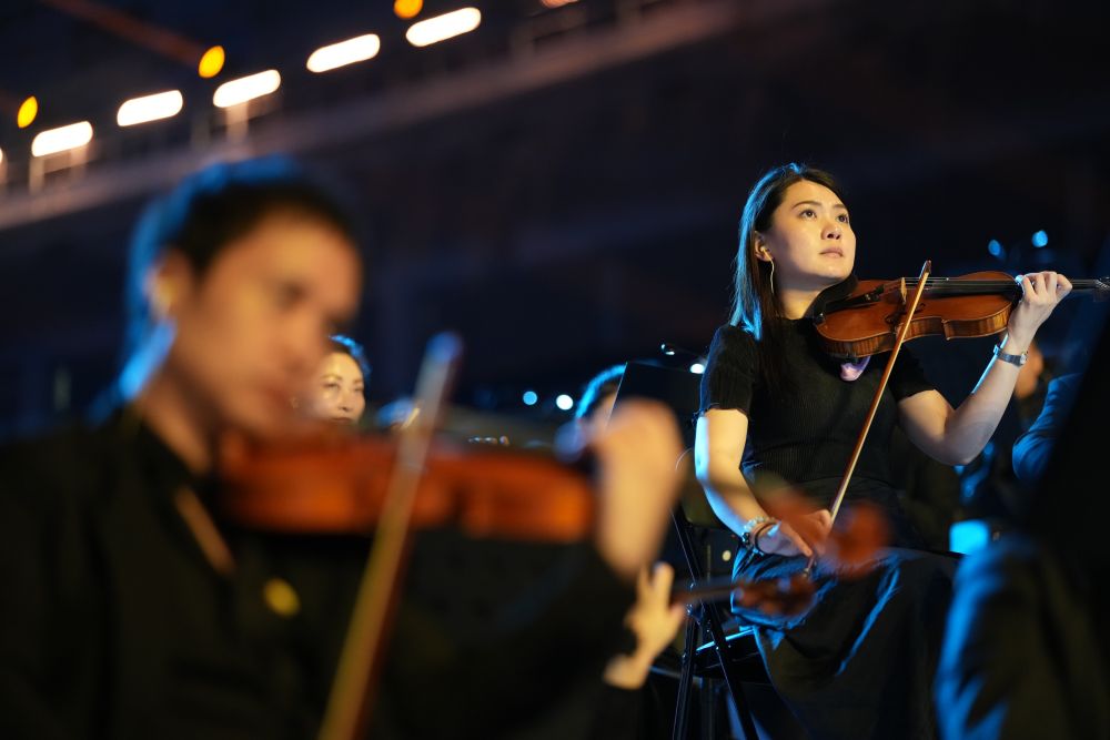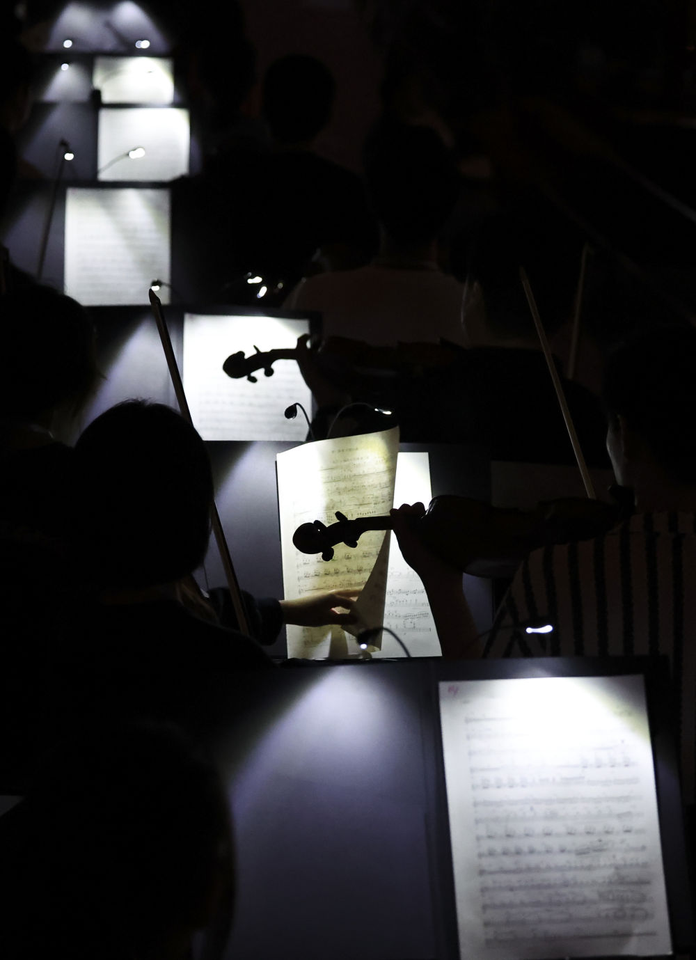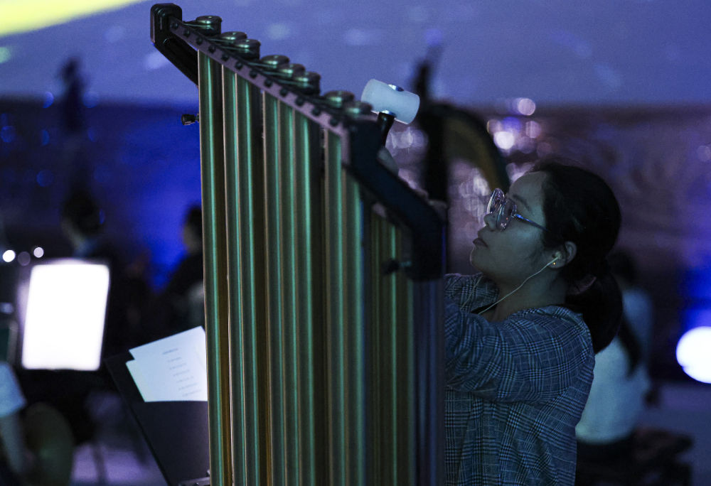 ↑10月28日,表演者在彩排中演奏。新华社记者 胡星宇摄