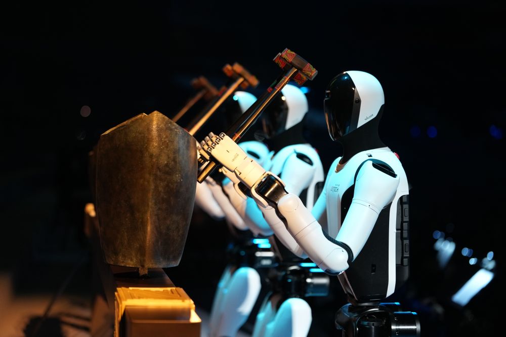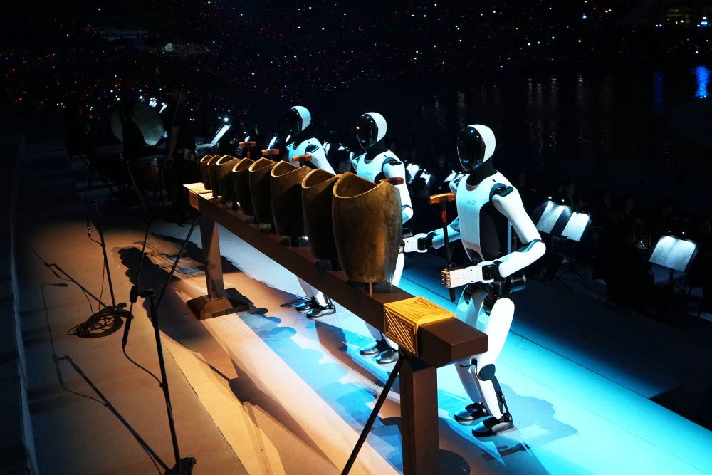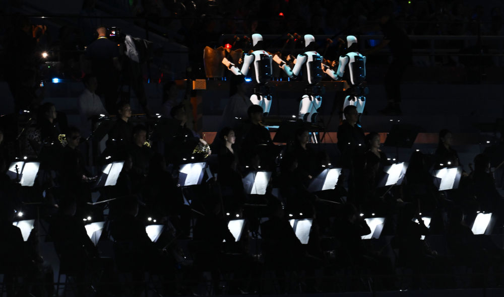 ↑11月6日,机器人在彩排中。新华社记者 李一博 摄