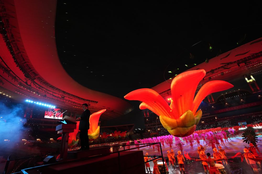 ↑11月9日,演员在开幕式现场表演。新华社记者 李一博 摄