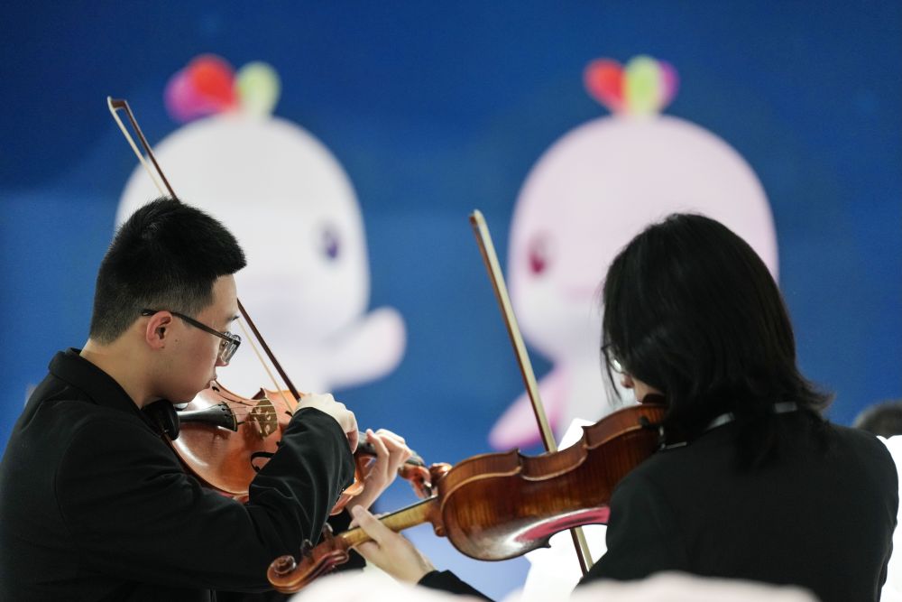 ↑11月4日,表演者在彩排中演奏。新华社记者 那宇奇 摄