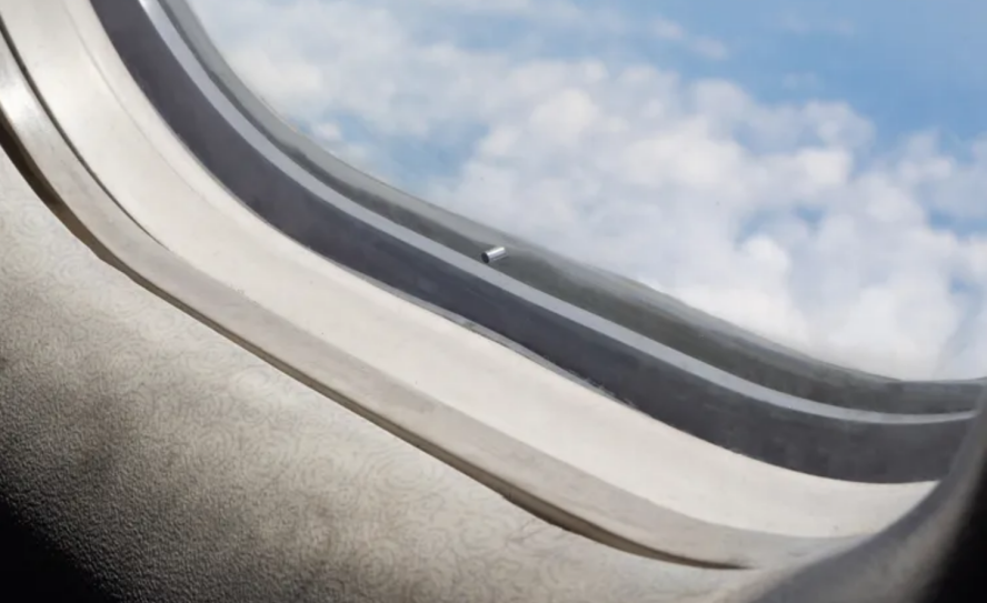 这个小孔还有一个功能——它能帮工程师们判断飞机舷窗是不是漏气了。我们知道,飞机座舱是一个加压环境。如果外层舷窗某个位置出现了细微裂纹或密封不严,舱内的空气就会顺着小孔喷出去,形成一股细小的气流。这股气流会冲刷外层舷窗的内壁,久而久之,在那个位置就会留下明显的痕迹,就像玻璃上被水冲过的水迹一样。