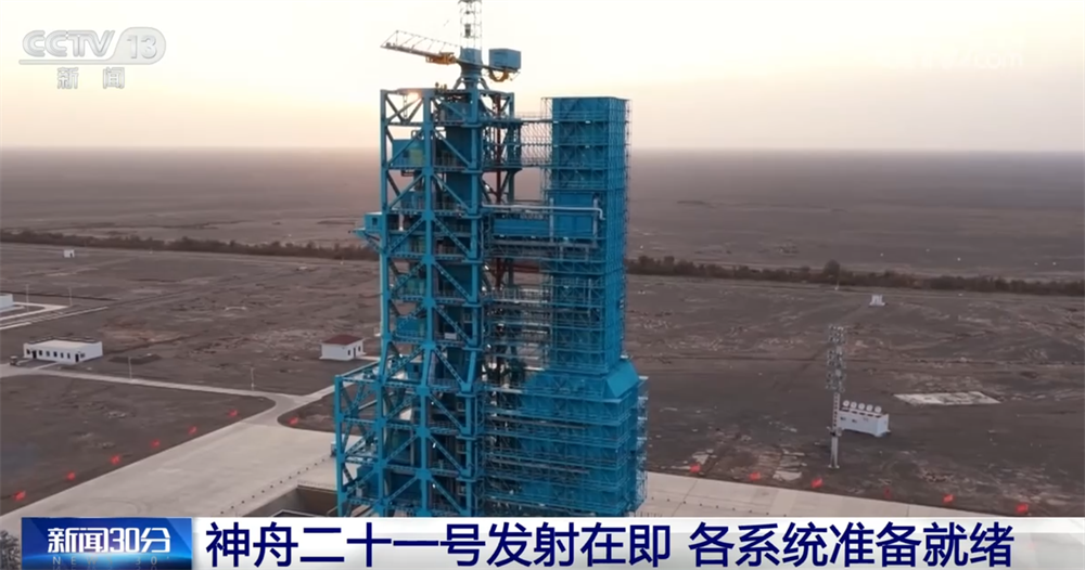 在酒泉卫星发射中心,记者身后正被塔架包裹着的就是神舟二十一号船箭组合体,全区合练是一场“全系统+全流程”的检验,是任务发射前的重要环节。合练结束后,系统参数和流程基本锁定,这也意味着发射进入了 “倒计时”阶段。