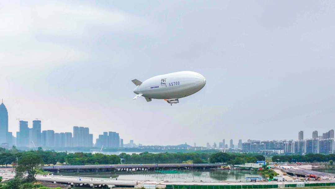 AS700载人飞艇由中国航空工业集团特种飞行器研究所自主研制,是我国首个按适航规范研制、拥有完全自主知识产权的载人飞艇。它总长50米,最大航程700千米,可搭载10人。该飞艇凭借“低空慢飞、安全可靠”的特点,可在100—300米的最佳观景高度,让游客俯瞰祖国河山大好风光。