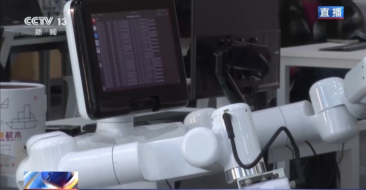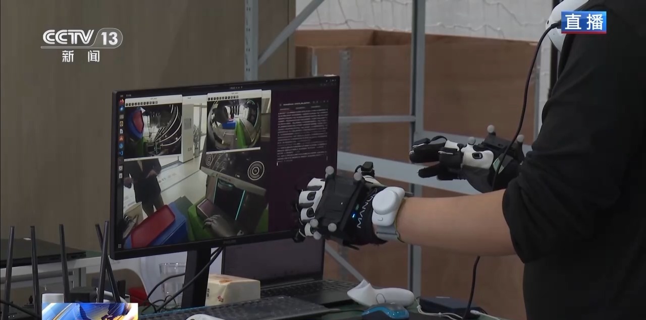 总台记者毛俊看到,一位工程师穿戴上外骨骼遥控操作设备完成夹取和放下的动作,外骨骼的关节和机器人的关节基本一一对应,整个操作流程很流畅。设备上一行行飞速闪过的代码,都是每一个动作过程中记录下的数据,包括位置、速度、力度、电流大小等。