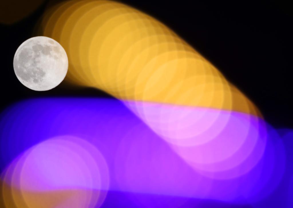 2025年11月5日晚,在浙江省衢州市水亭门景区拍摄的年度最大满月。新华社发(周初钊 摄)