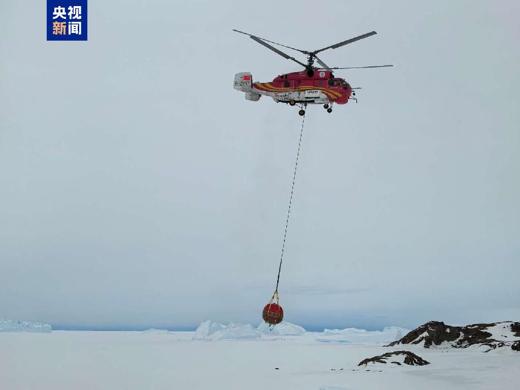 当地时间12月2日16时42分(北京时间12月2日19时42分),首架次直升机吊挂油囊作业顺利展开。雪鹰102直升机从“雪龙”号起飞,将“雪龙2”号所载极地用燃油吊运至中山站。截至当地时间12月2日21时(北京时间12月3日0点),已顺利将12个油囊(约40吨极地用燃油)吊运至中山站。