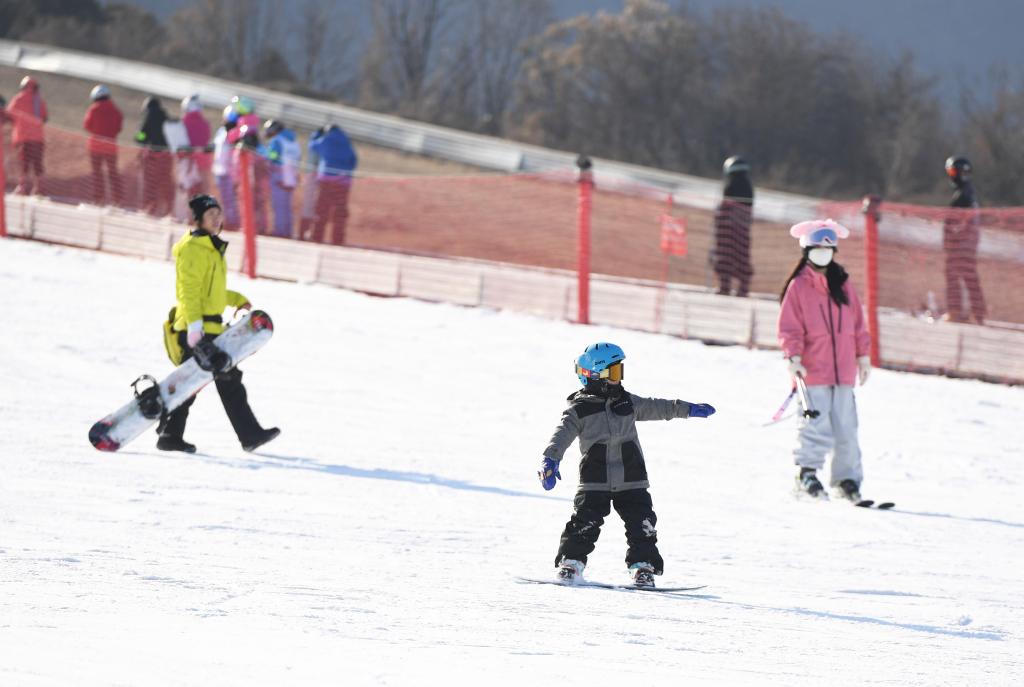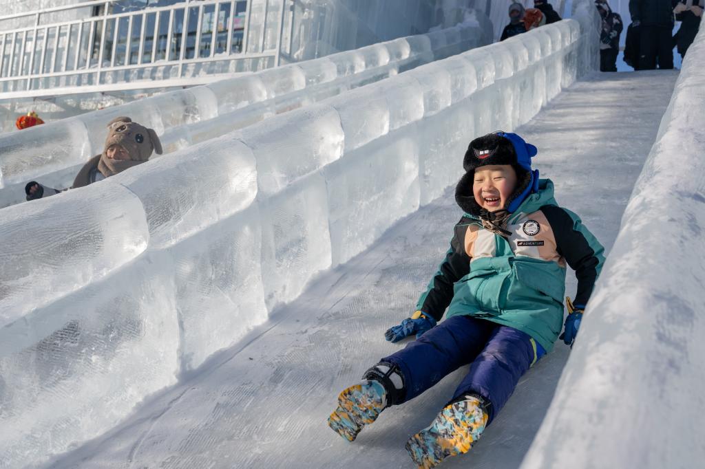 12月21日,孩子们在冰雪那达慕开幕式上滑冰梯。新华社记者 连振 摄