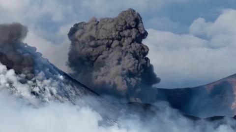 12月27日的画面显示,火山喷发产生大量浓烟。意大利国家地质与火山学研究所已发布最高级别的红色航空警告,但火山附近航班仍在正常运行。