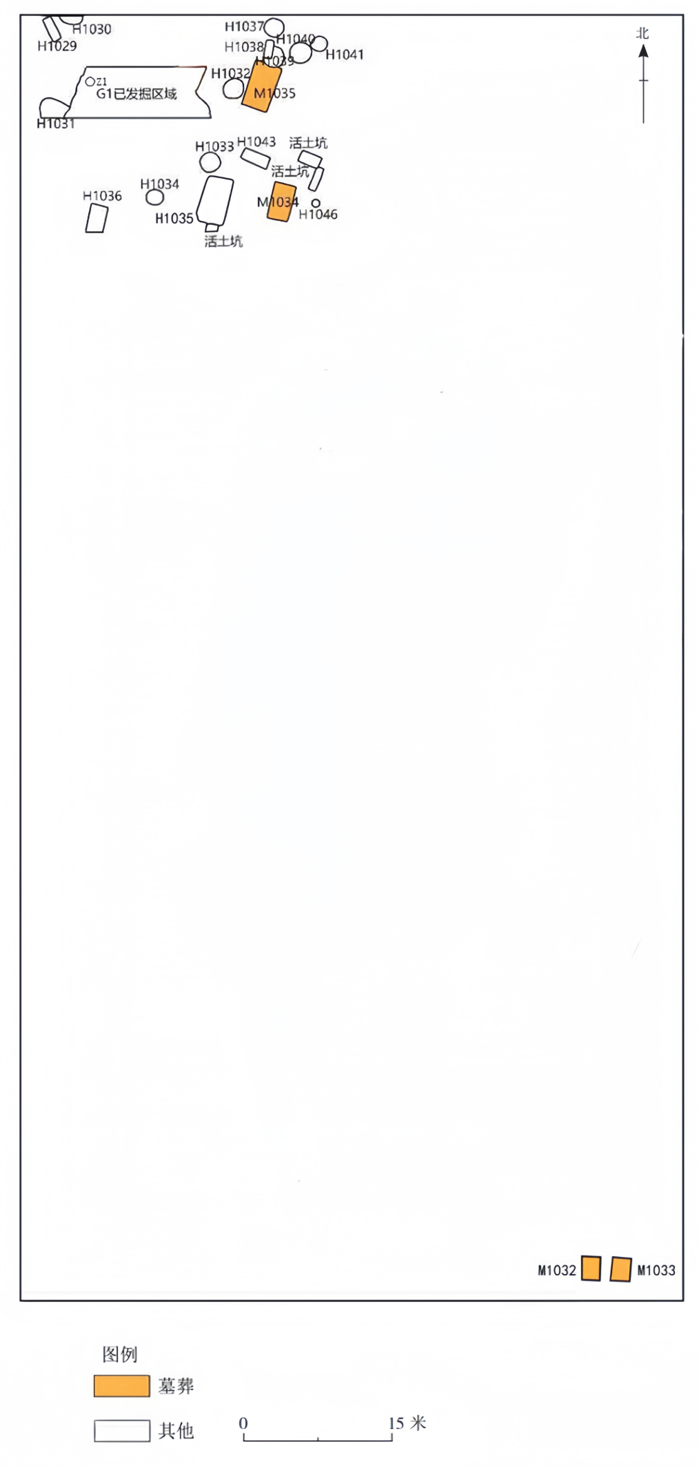 现将其中4座小型墓葬M1032、M1033、M1034、M1035、马坑H1035、灰坑H1041及灶Z1的发掘情况公布。