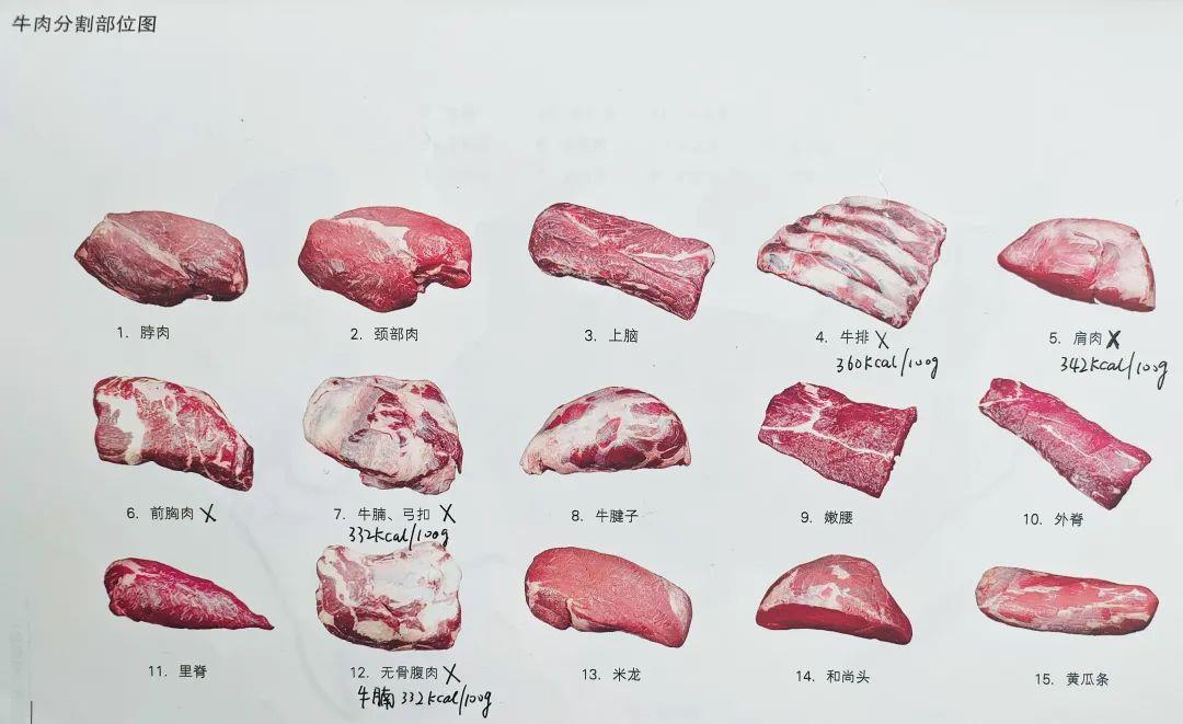 具体是指牛肉里的牛胸肉、牛腩肉、牛肩肉、牛小排,猪肉里的小排、后肘、五花肉、后臀肉、肋条肉。