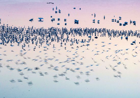 2025年12月28日,江苏兴化市,大批候鸟在里下河国家湿地公园栖息、觅食。图/新华