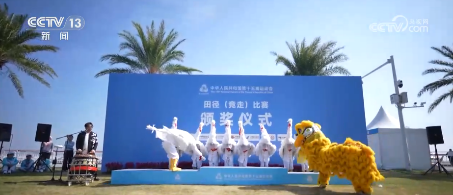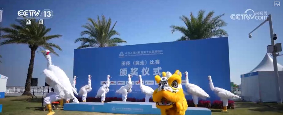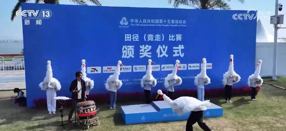 11月17日,在十五运会马拉松竞走混合接力项目颁奖仪式现场,来自广东珠海金湾的非遗表演《非遗焕彩》惊艳亮相。国家级非遗三灶鹤舞、广东省级非遗三灶民歌和珠海市级非遗三灶狮舞首次同台亮相,为体育盛会注入鲜活的地域文化基因。